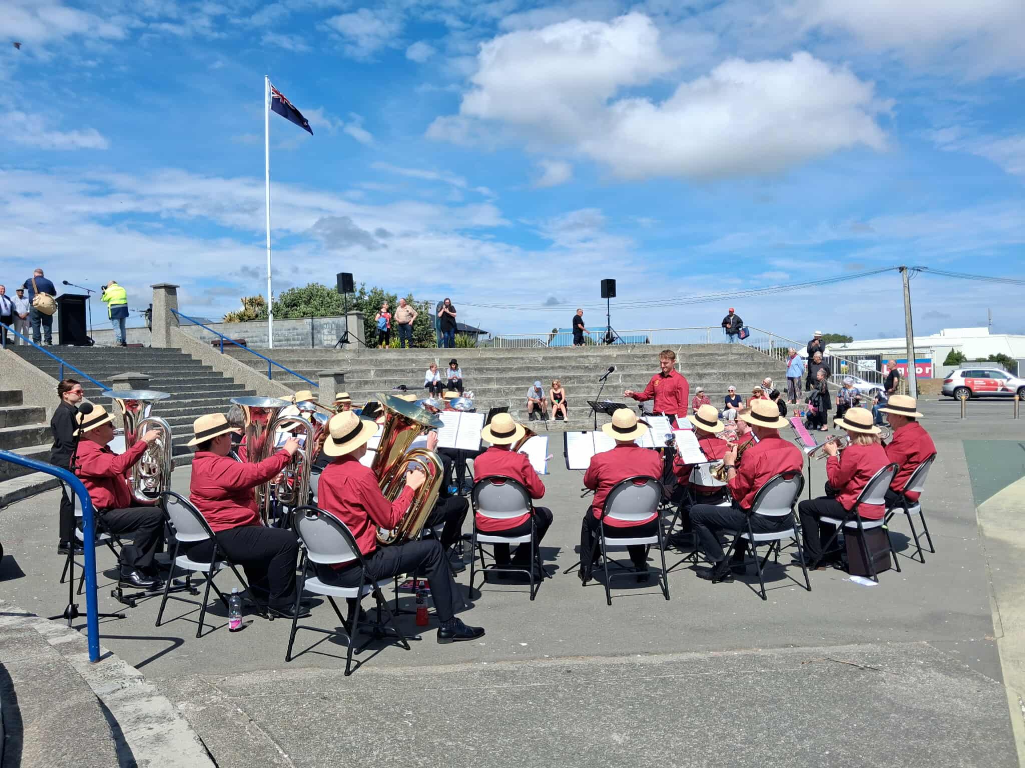 This year was no exception, and the band was again joined by 10 young men from around the Pacific who are part of the MAP programme run by the NZ Army Band. New Brighton Silver band is the host civilian band for these young men. They paraded with us in there national uniforms and provide an added dimension to this very special day.