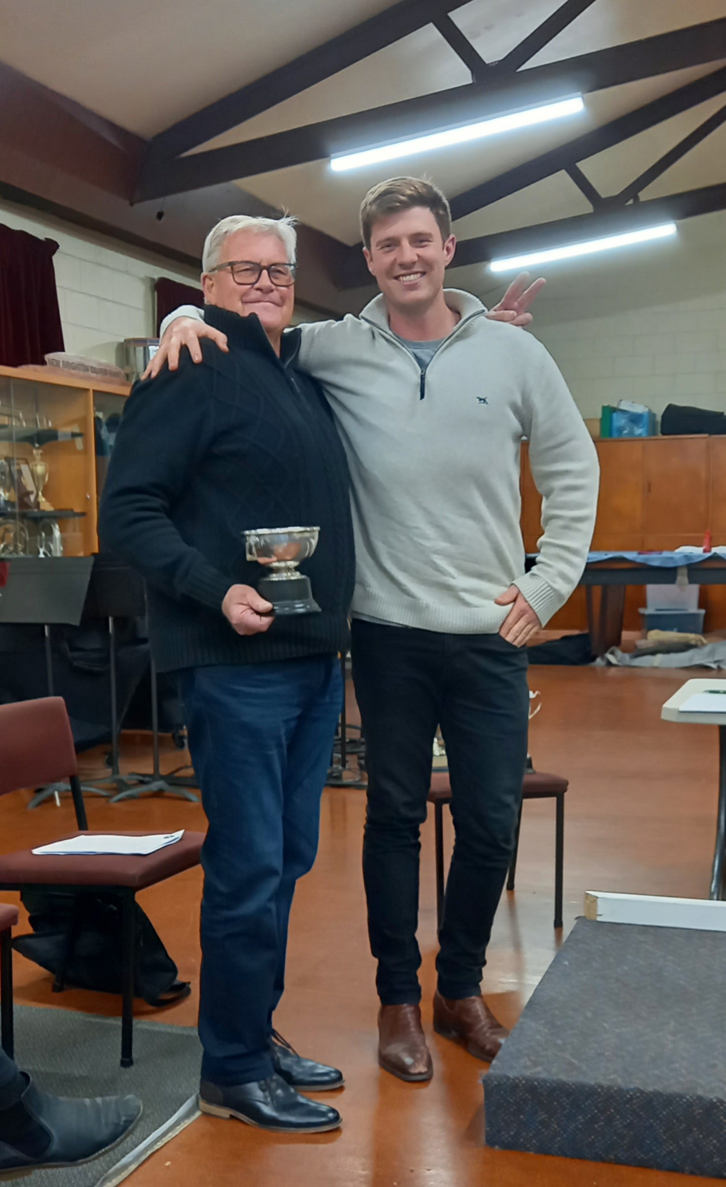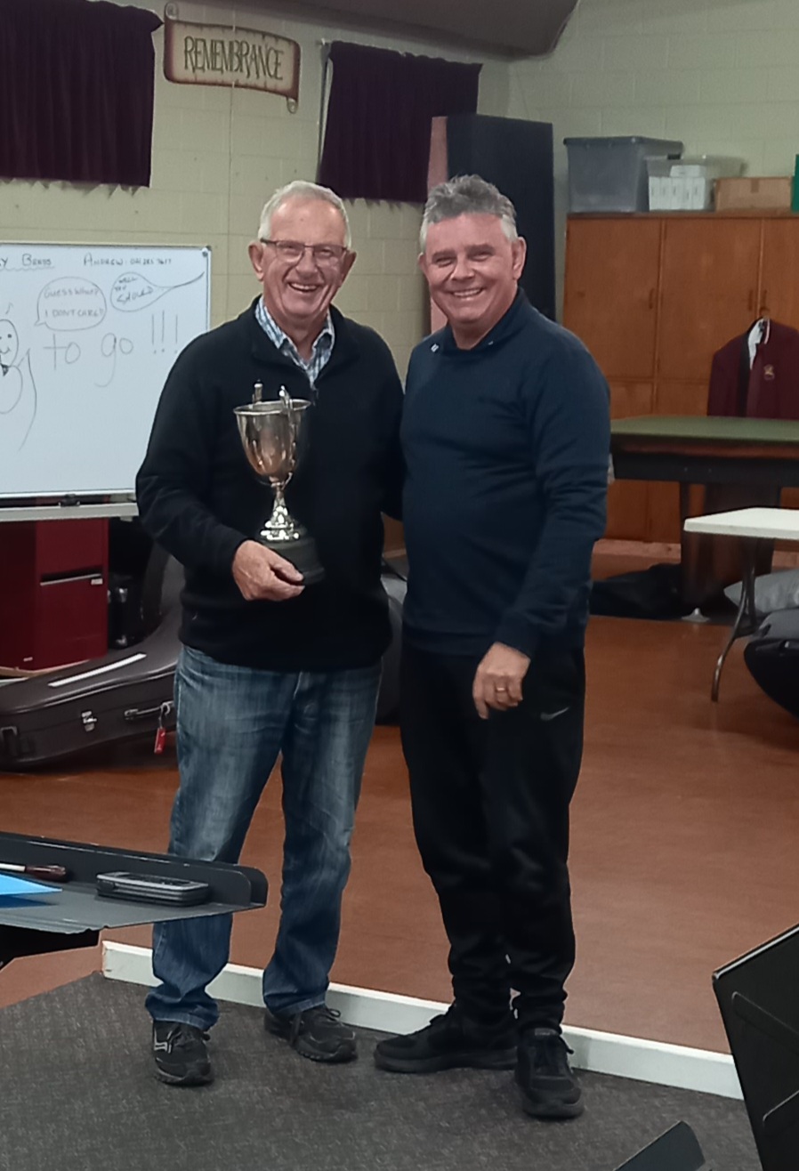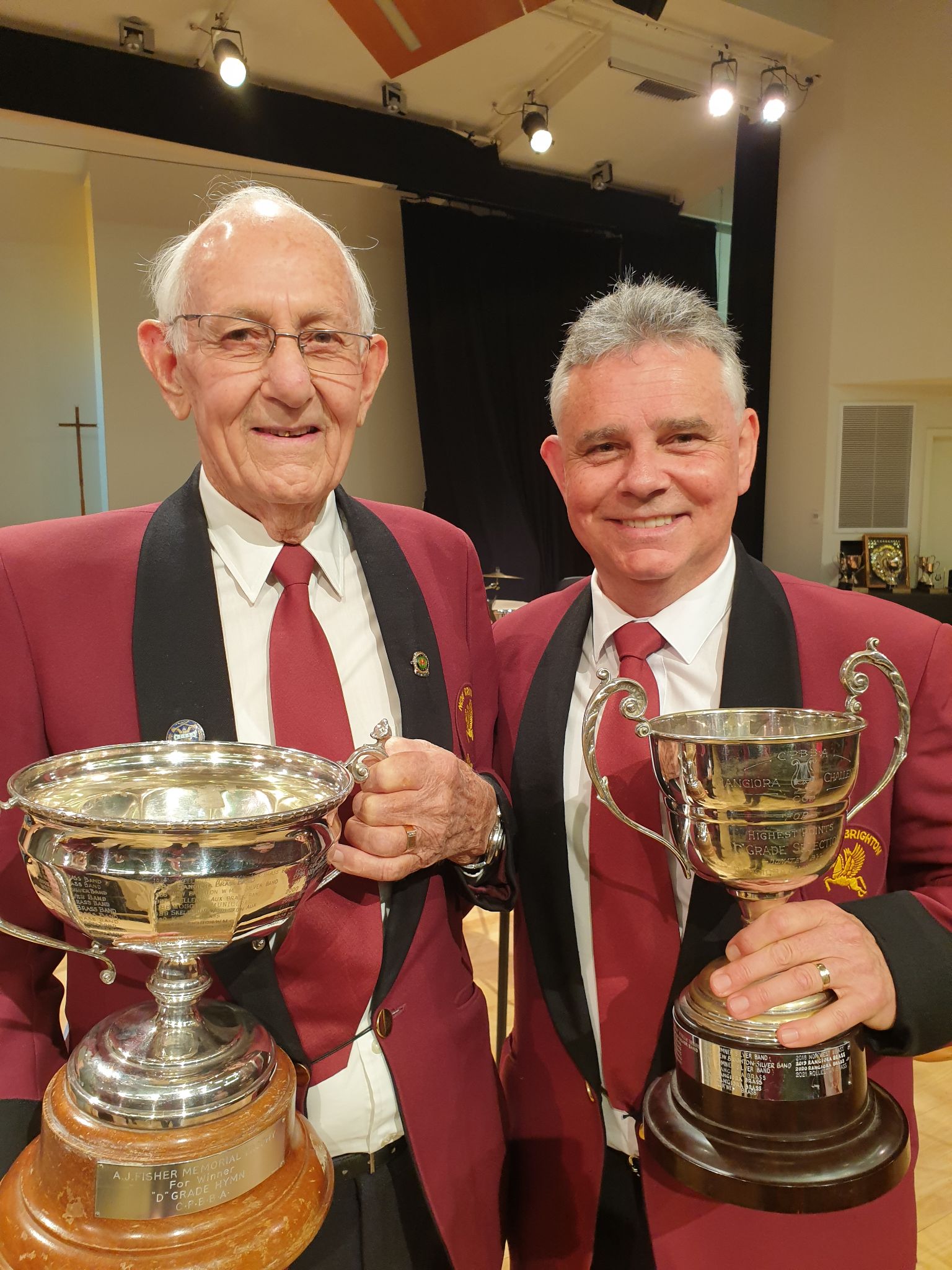 The Band’s President Brent Andrews and Band’s Patron Errol Miller with the Silverware.