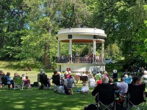 The weather was kind and a good crowd sat under the trees, listening to and enjoying the nostalgic music of the war years.